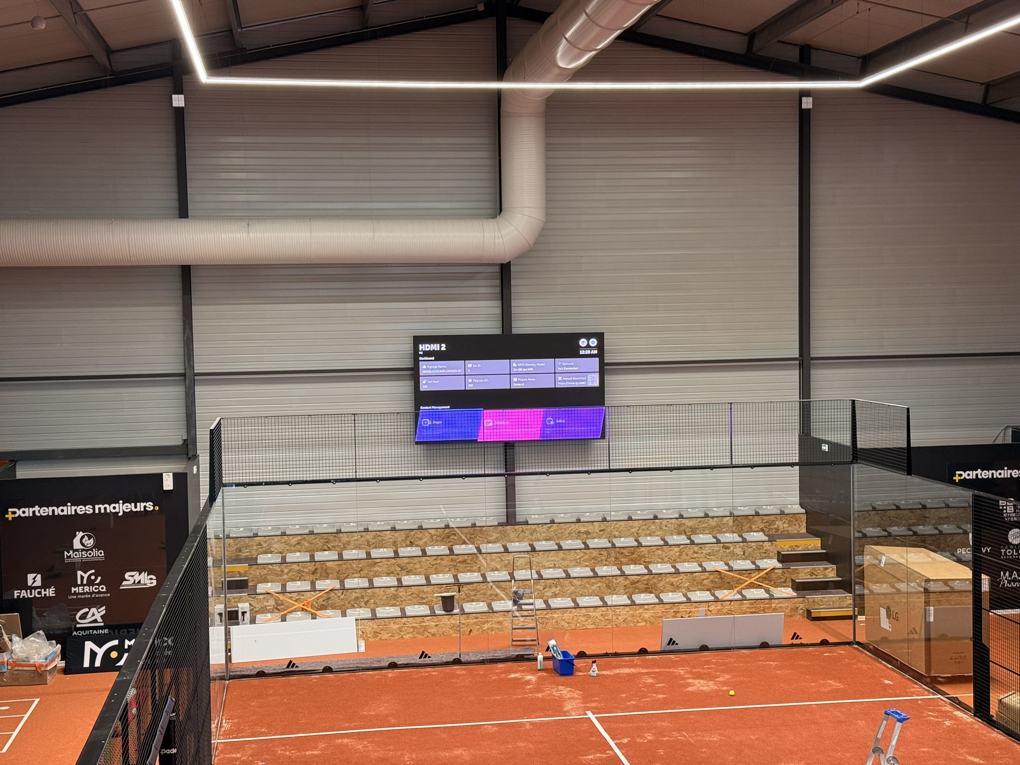 Le complexe sportif souhaitait installer un écran LED grand format afin d’afficher les scores en temps réel des matchs et de valoriser les dix terrains de padel du site.